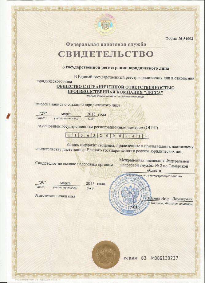 Свидетельство о государственной регистрации ПК "ДЕССА"
