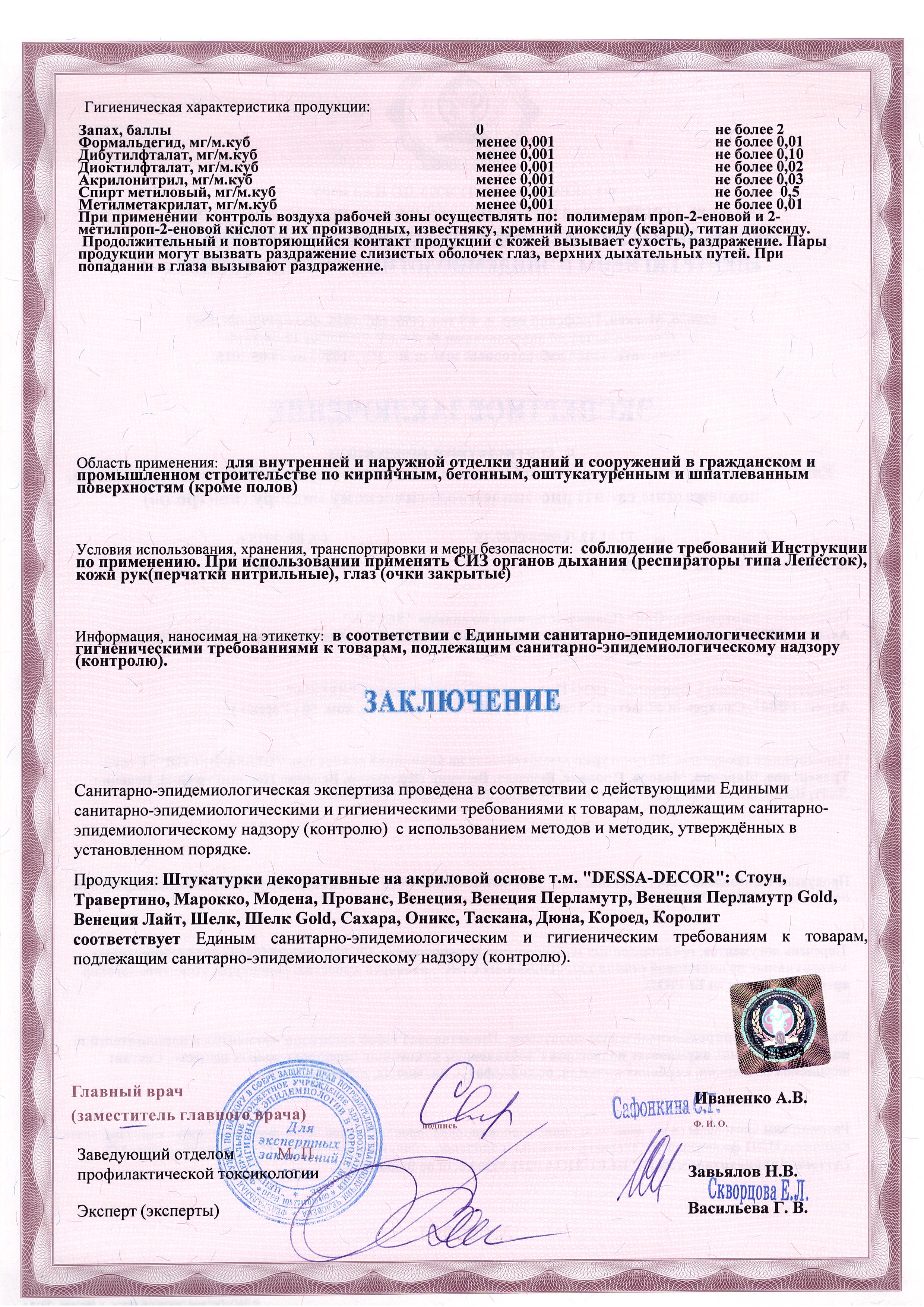 Санитарно-гигиенический сертификат, лист 2